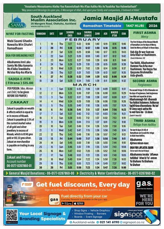 Ramadhan Timetable 2026